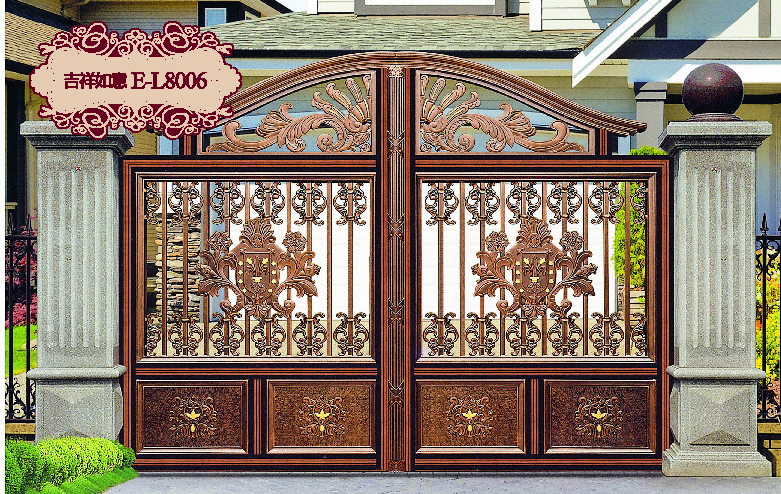 • 產品描述:鋁藝門就是用鋁作為主材加以精細的工藝流程制作成的大門,一般都是作為庭院門使用,鋁藝大門最大的特點就是造型非常的精美,鋁的可塑性比較強,可以根據需要加工成各種各樣的造型,再加以裝飾,外觀效果非常的高雅。